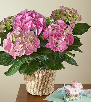 • Pink Hydrangea Plant and Welcome Baby Lovepop Pop – Up Card – FedEx