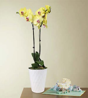Welcome their new addition with this unique flowering combo. Our Yellow Orchid and Welcome Baby Lovepop card bundle is the perfect way to congratulate the new parents with a gift that will live on well past the due date as a happy reminder of this special