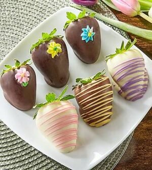 $54.90Chocolate lovers will be powerless before this delectable half-dozen of berries, which have been variously dipped in white, dark and milk chocolates and festively decorated for spring.