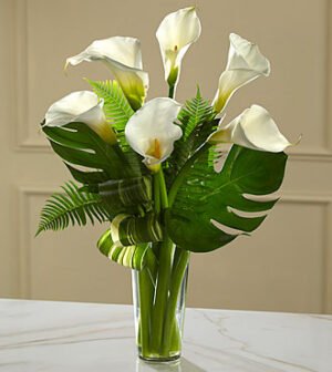 $97.90Elegant, dramatic, understated and sophisticated. This simple bouquet of white calla lilies is bound to make a big impact celebrating a very special life. When it is time to pay tribute to someone whos left behind memories of a big life well-lived, this a