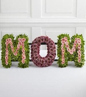 $267.90The FTD Remembering Mom Arrangement honors the life and the love you have for your mother at her final farewell service. Light pink spray roses, plum daisy poms, Bells of Ireland and myrtle stems are artfully arranged to spell the word, Mom, creating a wo