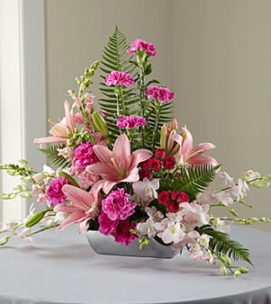 This beautiful, blushing tribute to a life well-lived is an excellent choice for expressing your sympathy in a color palette that reflects the taste of the deceased. Handcrafted in gorgeous shades of pink from soft-to-saturated by a local FTD artisan flor