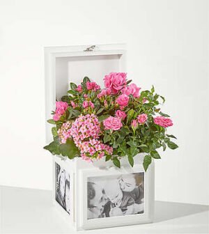 $74.90Sure to make your special someone’s day with this lovely collection of plants in a Keepsake Box that can be used to hold memories in each photo slot. Planted full of blooms and lush foliage plants, includes Pink mini roses and pink kalanchoe.