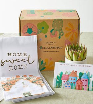 $64.90Send a thoughtfully curated gift that is sure to warm their new home. Our Housewarming gift box comes with an Echeveria Succulent, a Home Sweet Home tea towel, and a Happy Housewarming card. Each gift box arrives with care instructions specific to the suc