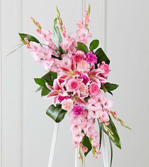 $197.90When your feelings of loss and sorrow compel you to make a grand gesture of sympathy, this dramatic, standing arrangement is a lovely way to convey your sincerest condolences. This extraordinary composition of pink blooms and lush greens handcrafted by an