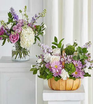$194.90Featuring heartwarming lavenders and whites, the traditional arrangements of this sympathy set are meant for celebrating the life of a loved one at a visitation, funeral, church service, cremation, or cemetery service or as a delivery to the family’s