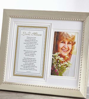 Beautiful 8×10 photo and sentiment frame includes comforting Celebration of Life poem. The beautiful sympathy frame includes a space for 3. 5×5 or 4×6 photograph of a loved one. Display at a Celebration of Life ceremony or on a wall, shelf or table in y