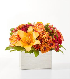 Step into autumn with fiery red and orange petals, expertly arranged to offer a moment of solace, joy or celebration to those you love most.
