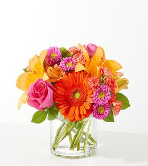 This dream of a bouquet is ready to bring a burst of summertime sunshine to any space. A blooming deluxe bunch of assorted gerbera beauties comes with a clear glass vase and arrives straight from the fields to you or your recipient’s door, making it the b